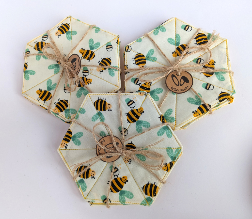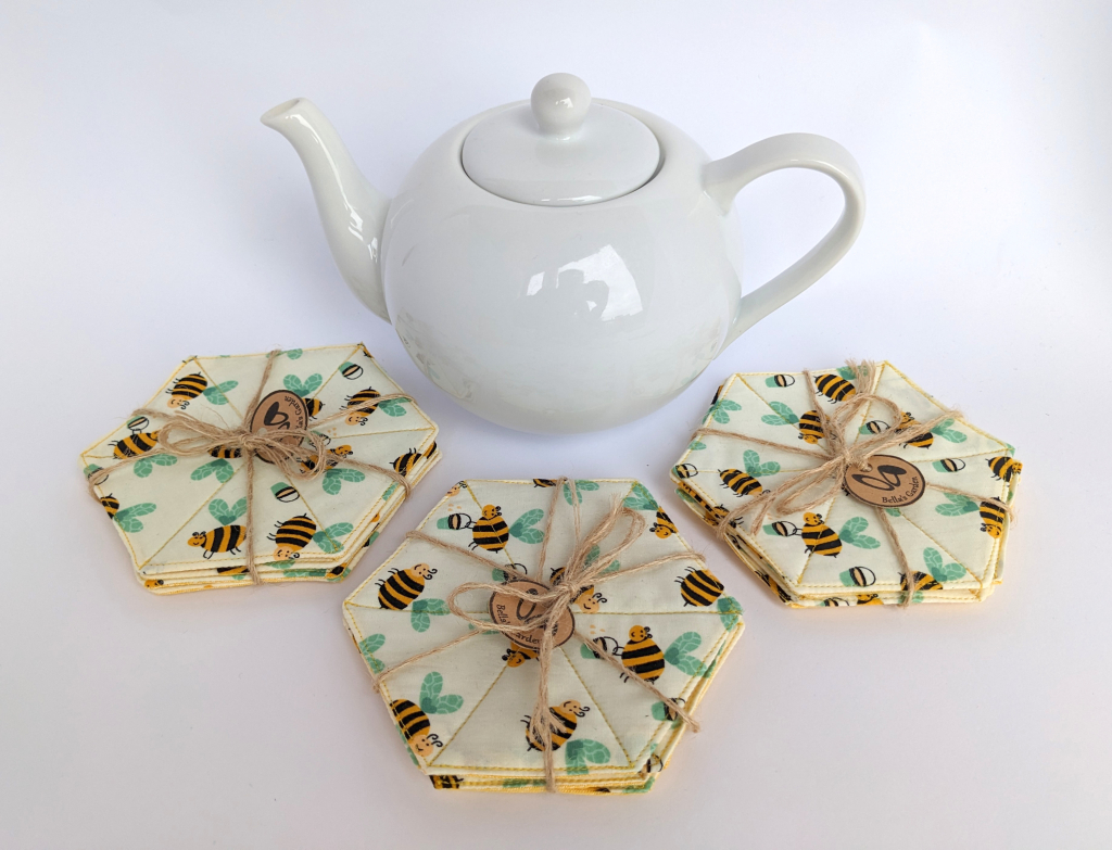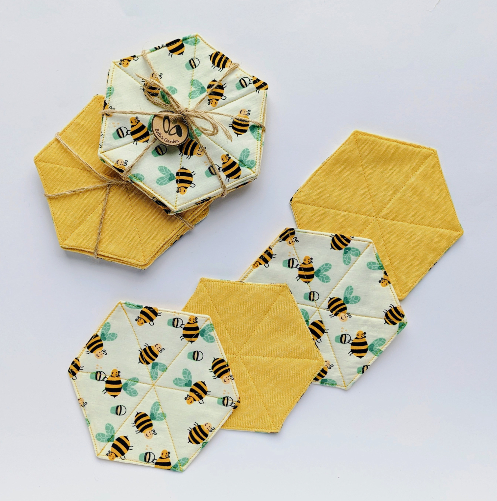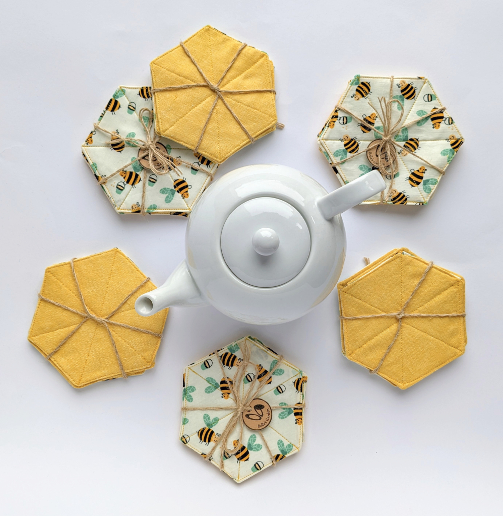 višekratni podmetači od tkanine s motivom pčela | praktični i jednostavni za održavanje | ugodni na dodir | upijaju vodu |